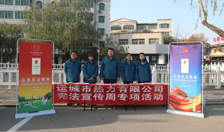 為搞好2019年度“憲法宣傳周”活動(dòng),公司制定了《運(yùn)城市熱力有限公司2019年度“憲法宣傳周”活動(dòng)實(shí)施方案》,陸續(xù)開(kāi)展了政策解讀、法規(guī)宣講、宣傳展板、發(fā)放宣傳材料等多種活動(dòng),廣泛宣傳憲法法律知識(shí)及集中供熱政策常識(shí)。