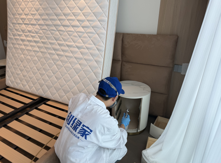 業主新家剛裝修完,全屋定制柜體多,對室內空氣質量要求格外嚴苛,在參考杭州除甲醛品牌排名、對比多家杭州除甲醛公司后,最終選定創綠家作為本次大宅的專屬除醛服務商。我們的團隊準時上門,先將家里的家具、家電、軟裝等逐一做好覆膜保護,避免施工沾染損傷。接著采用專業除醛產品與設備,針對柜體、地板、抽屜等甲醛易積聚區域,開展深層靶向治理,通過 “源頭分解 + 長效防護” 雙重核心技術,實現全空間 360° 無死角凈化,從根本上解決甲醛、TVOC 等有害氣體長期釋放問題,適配高端改善住宅的居住需求。